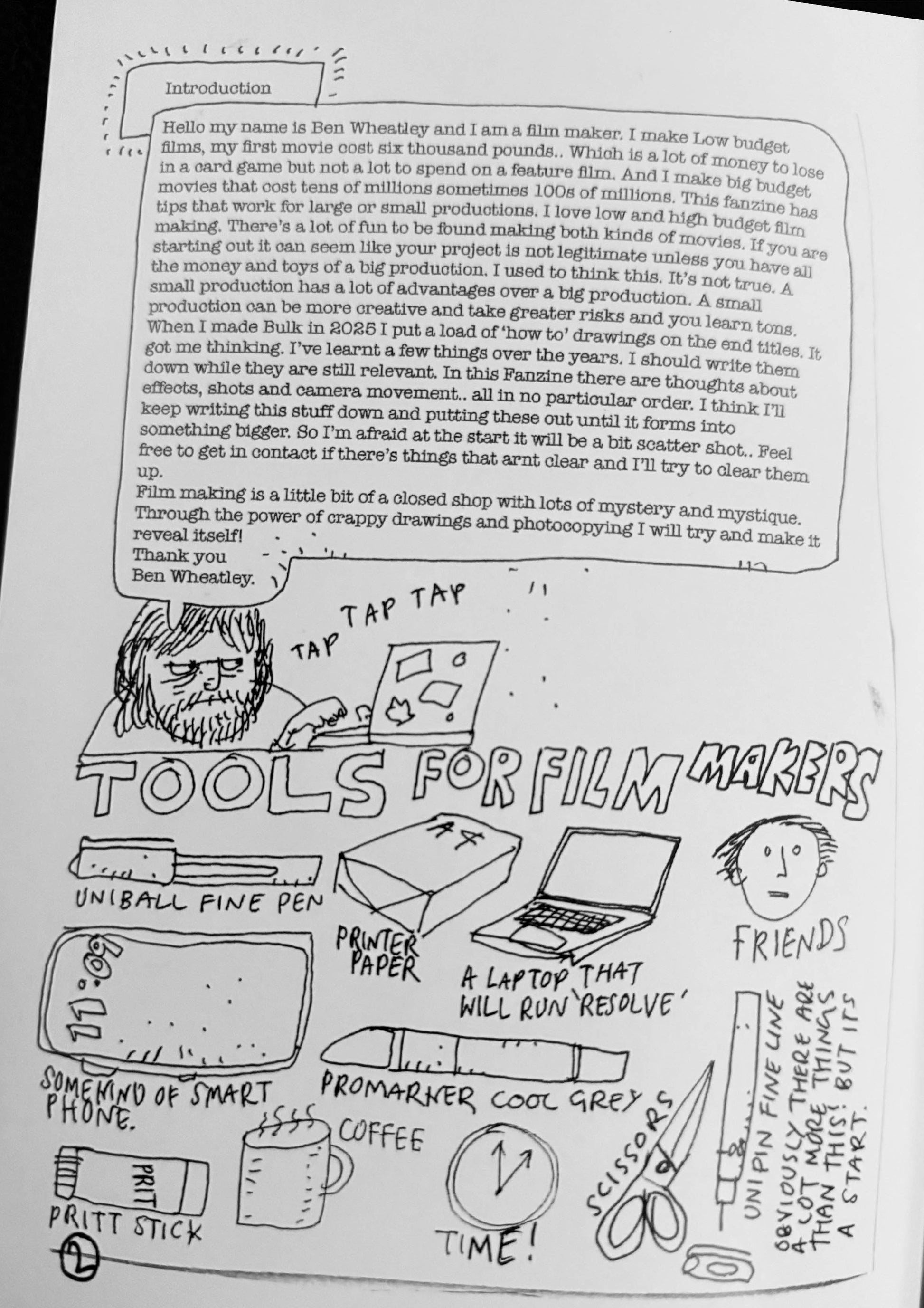 Issue 1 of Ben Wheatley's new fanzine. Written and drawn by Ben each issue unpacks his thoughts about filming. 24 pages packed full of handy tips and tricks and of course- great drawings!